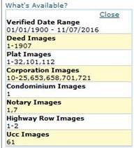 This box details the date ranges of all listed verified index records, and the total number of images for each listed document type.